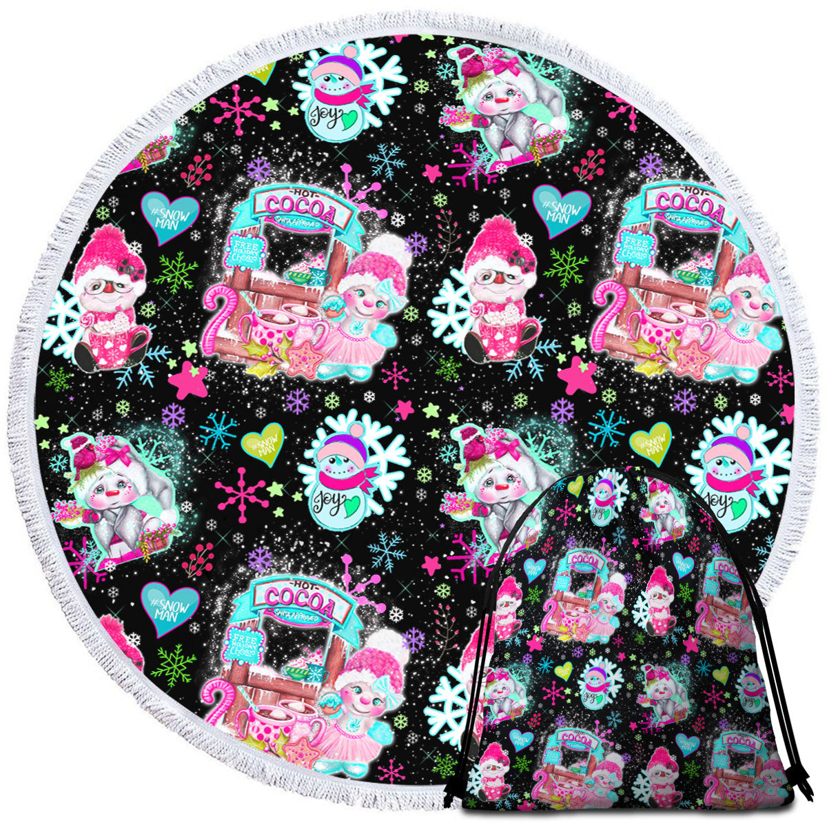 Christmas Winter Colorful Snowman Pattern Round Beach Towel