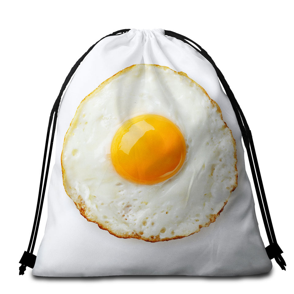 Cool and Funny Sunny Side Up Fried Egg Round Beach Towel