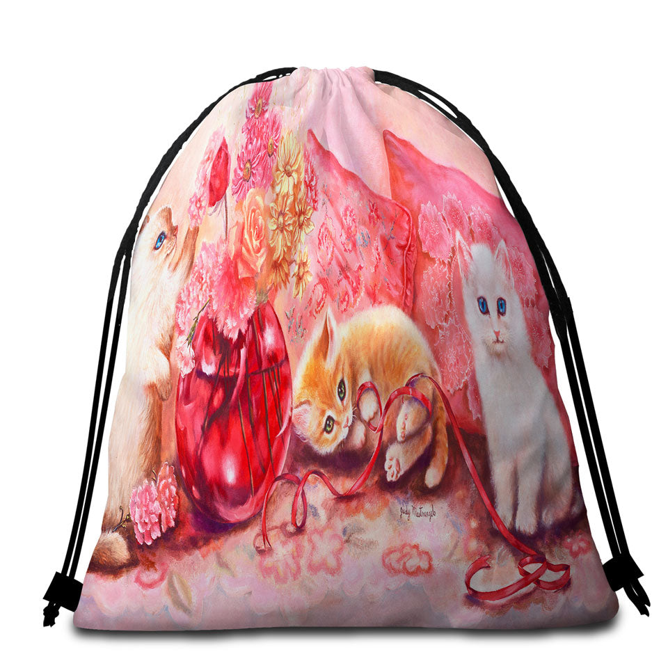 Cute Cat Art the Three Adorable Kittens Round Beach Towel