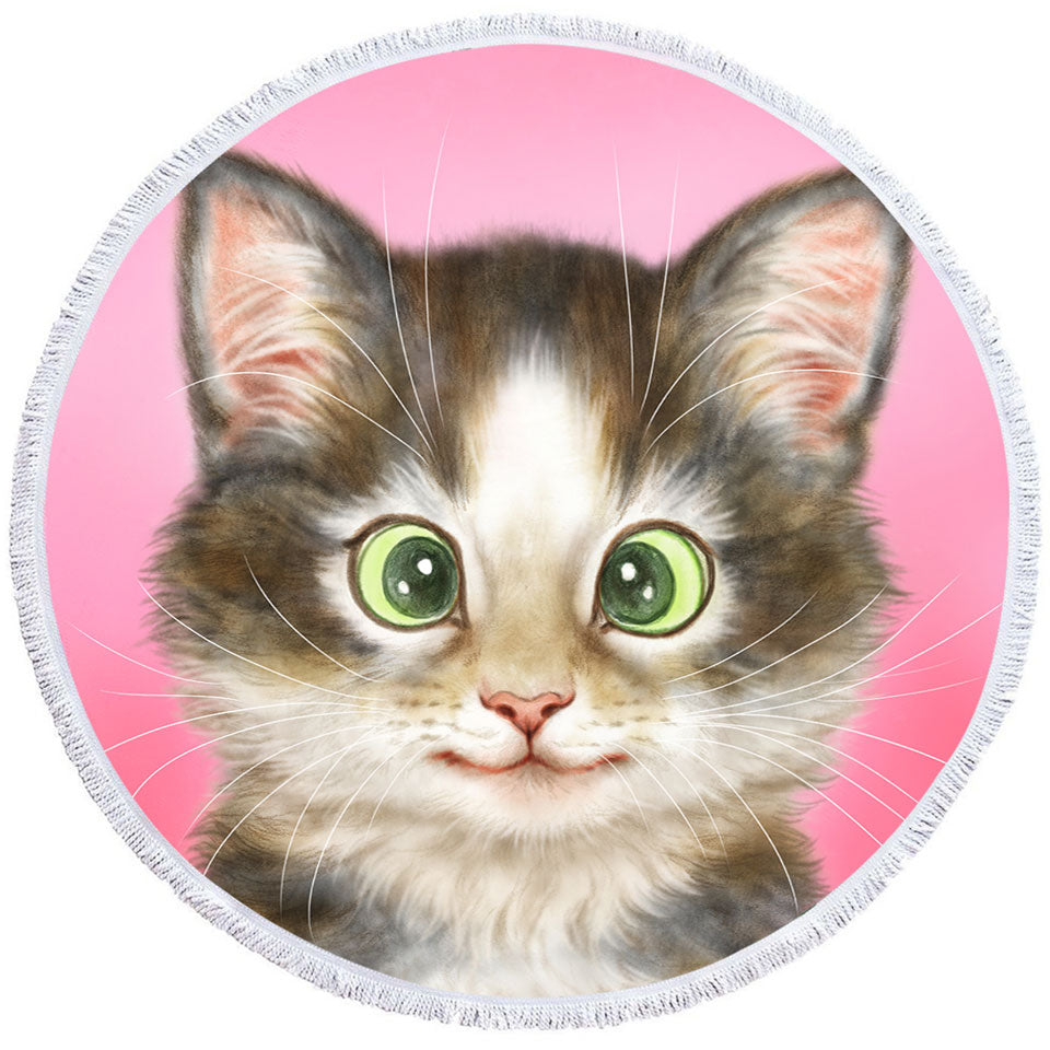 Cute Cats Drawings Sweet Black Brown Kitten Round Beach Towel
