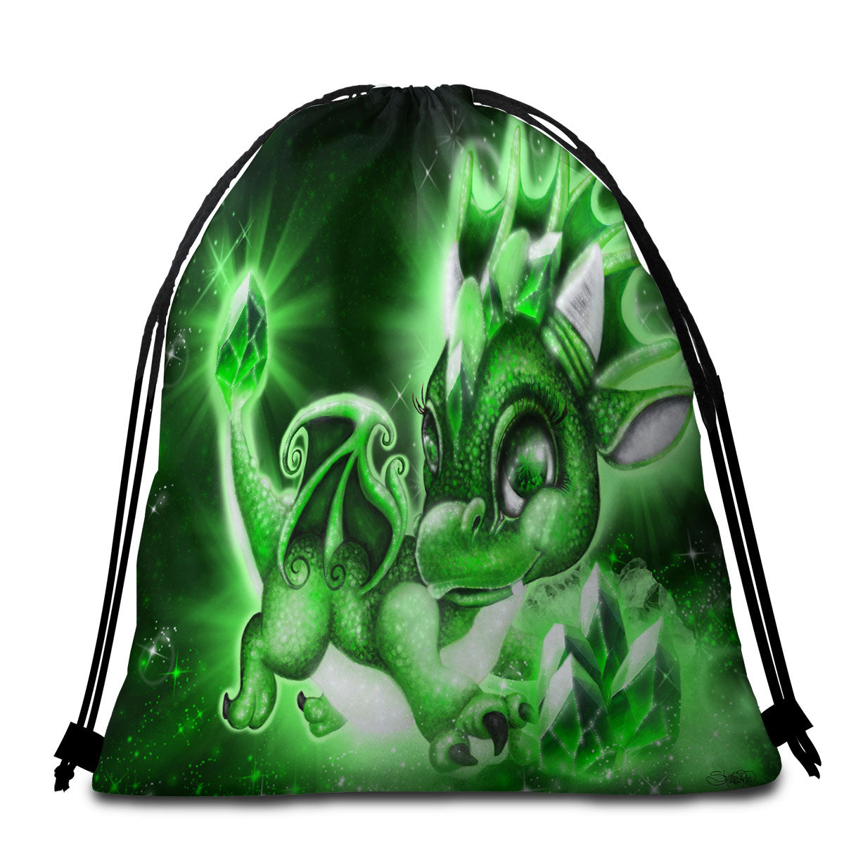 Cute Gift Beach Towel Bags for May Emerald Birthstone Lil Dragon