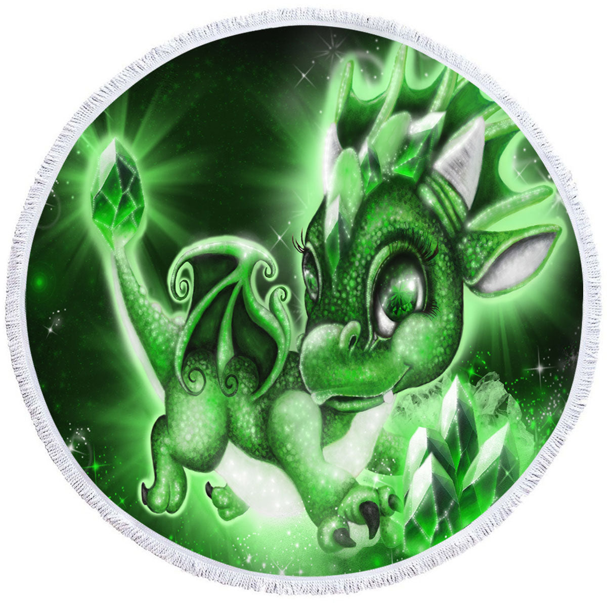 Cute Gift Round Beach Towel for May Emerald Birthstone Lil Dragon