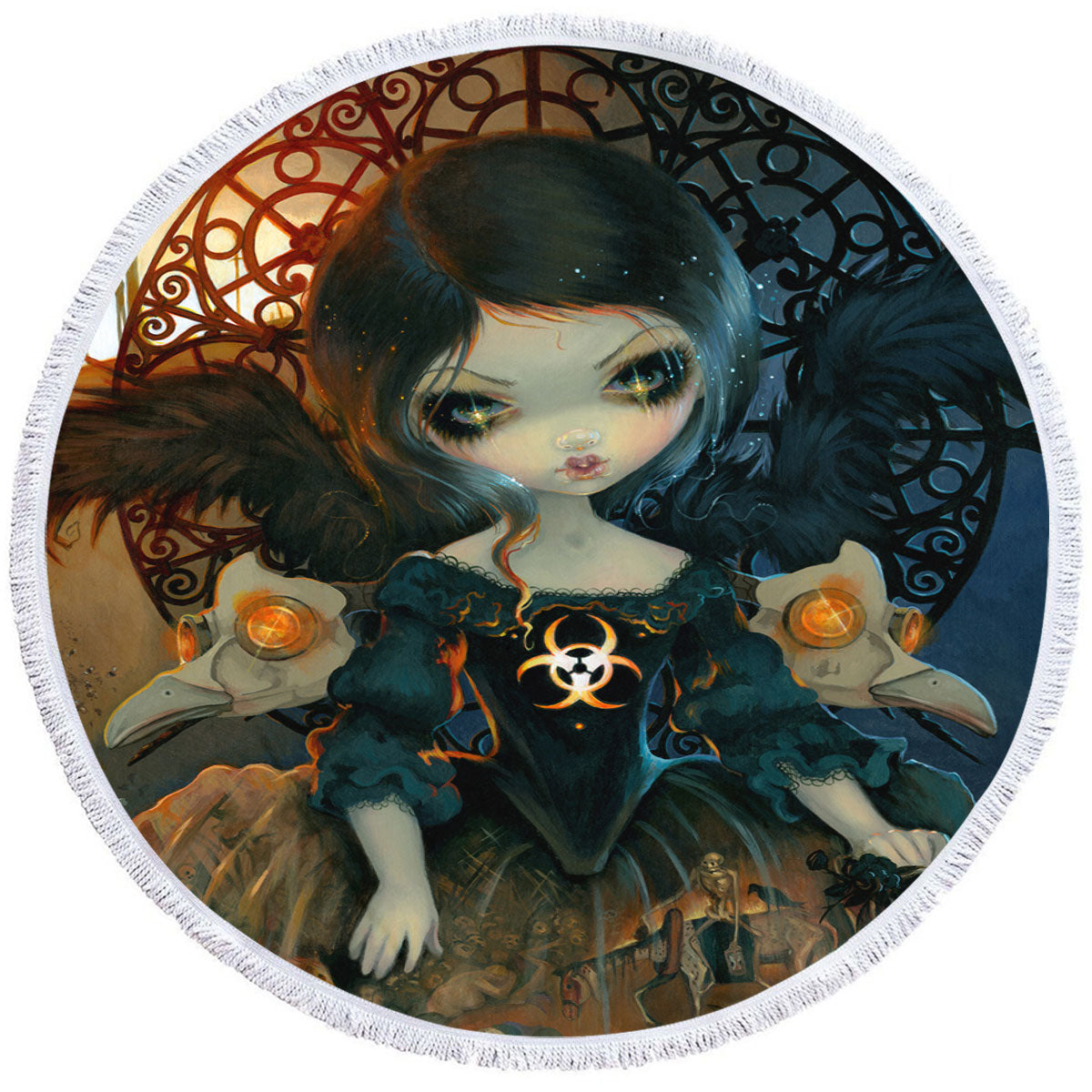Dark Gothic Art Unseelie Court Pestilence Death Angel Round Beach Towel