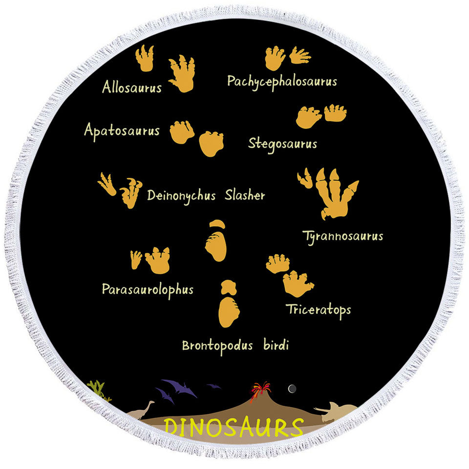 Dinosaurs World and Footprints Track Round Beach Towel