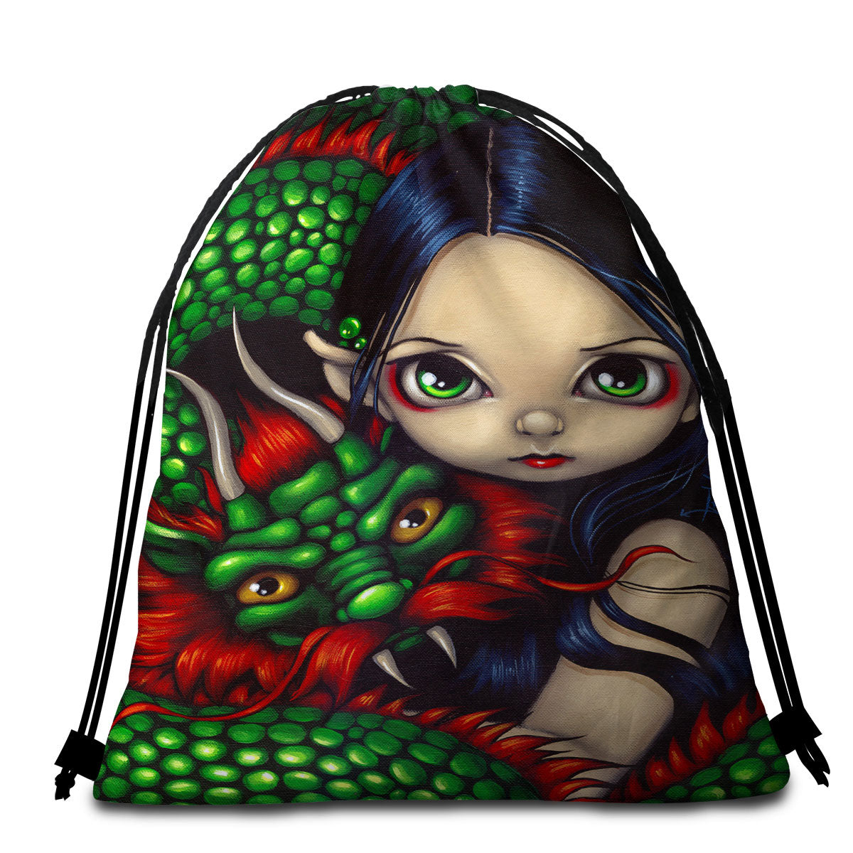 Emerald Guardian Elf Maiden and Her Chinese Dragon Beach Towels and Bags Set