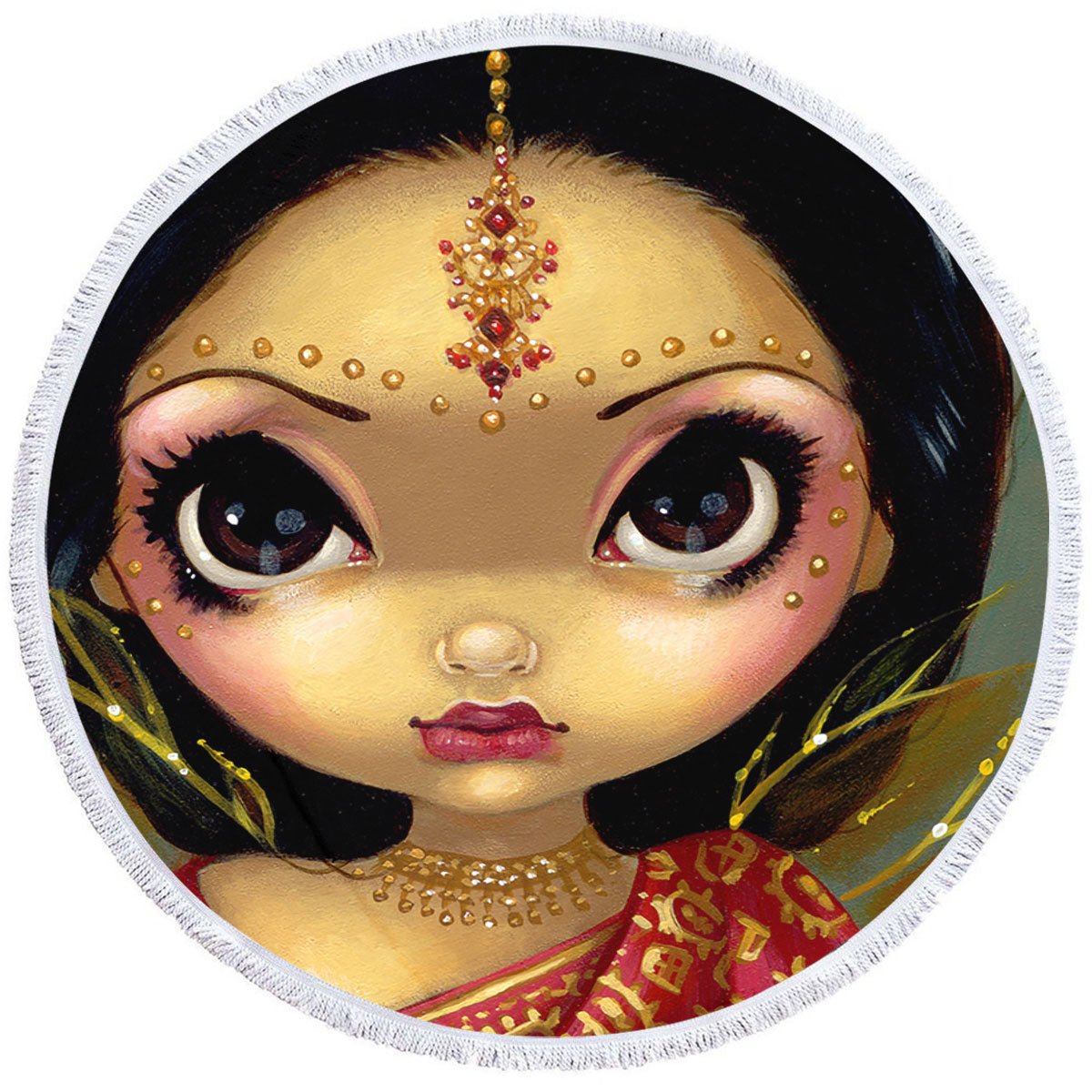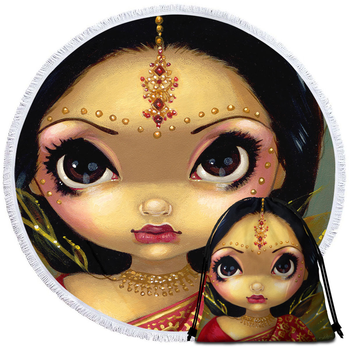 Faces of Faery #108 Beautiful Indian Princess Girl Round Beach Towel