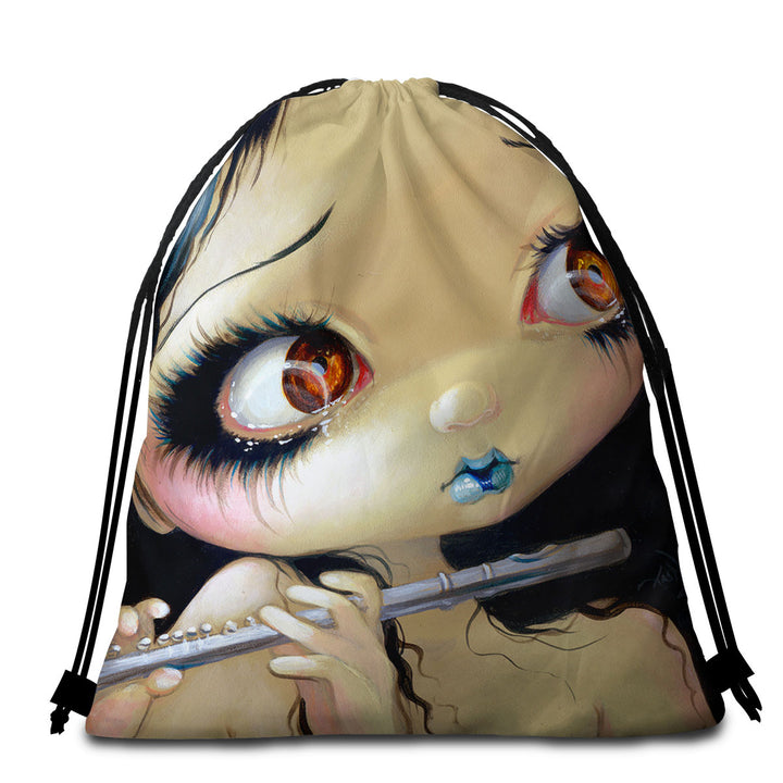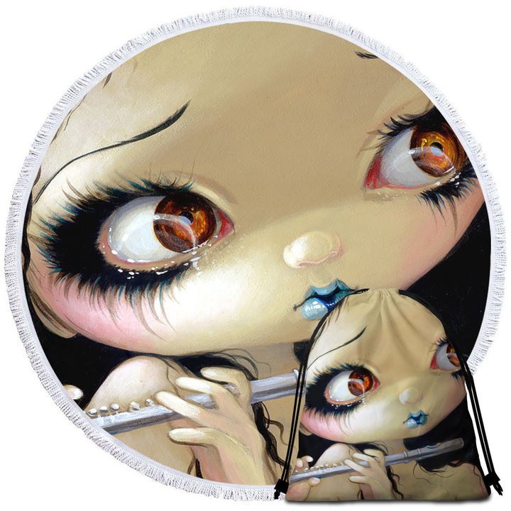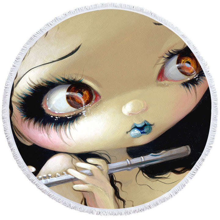 Faces of Faery #168 Cute Girl Playing the Flute Round Beach Towel