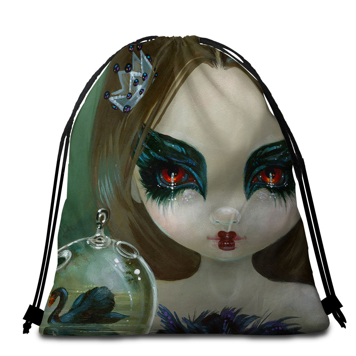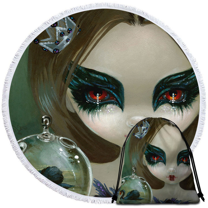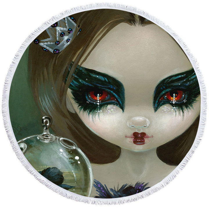 Faces of Faery #201 Black Swan Ballerina Girl Round Beach Towel