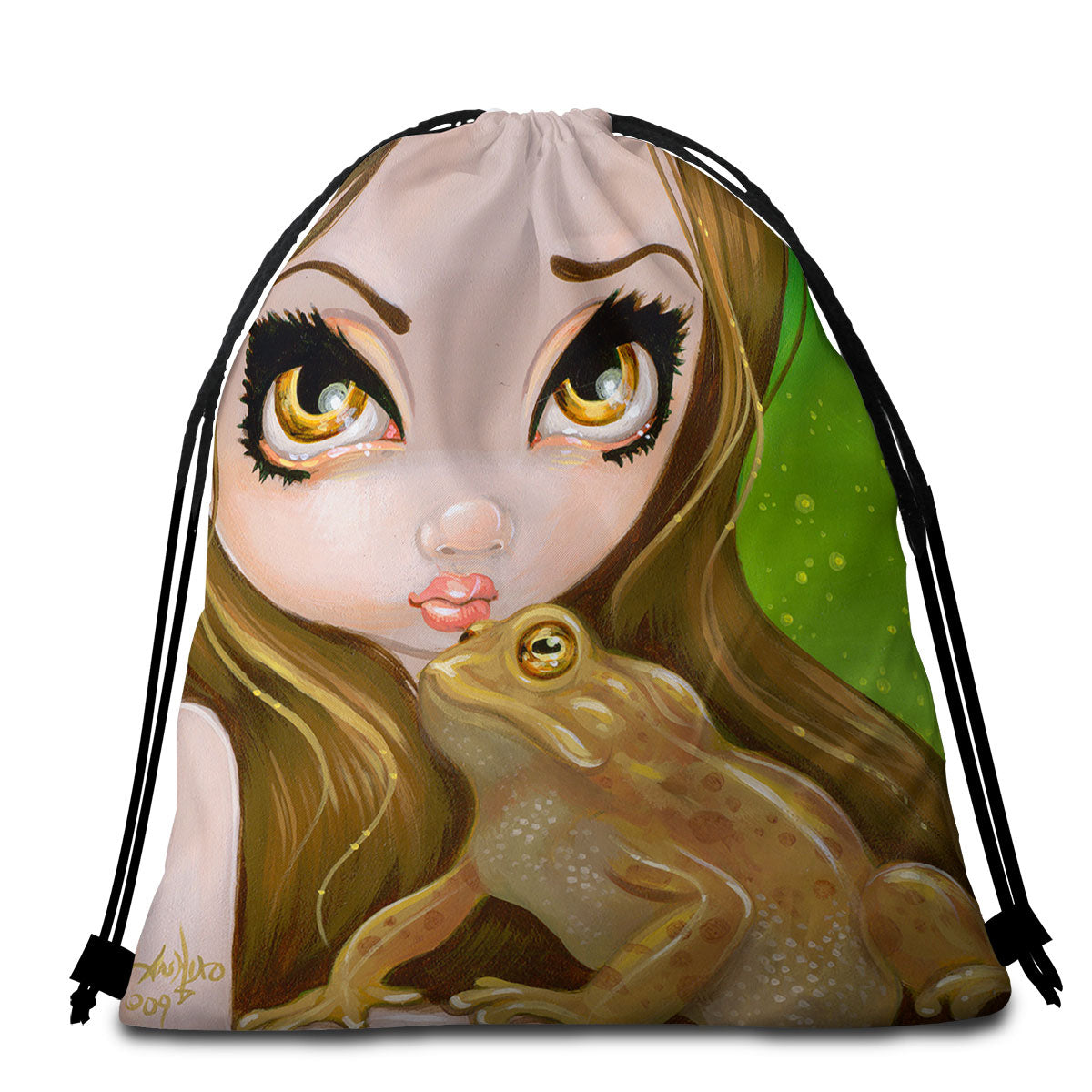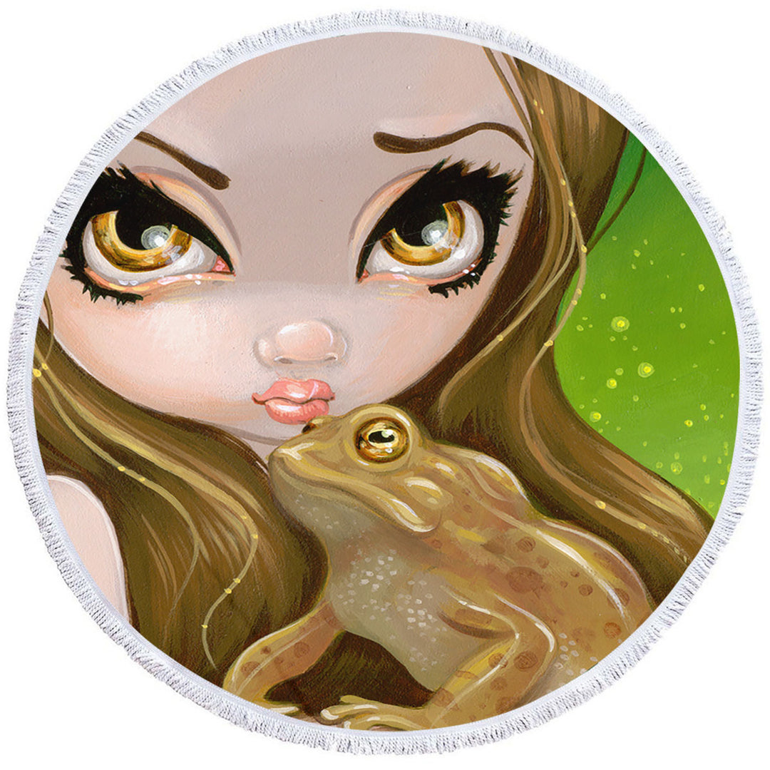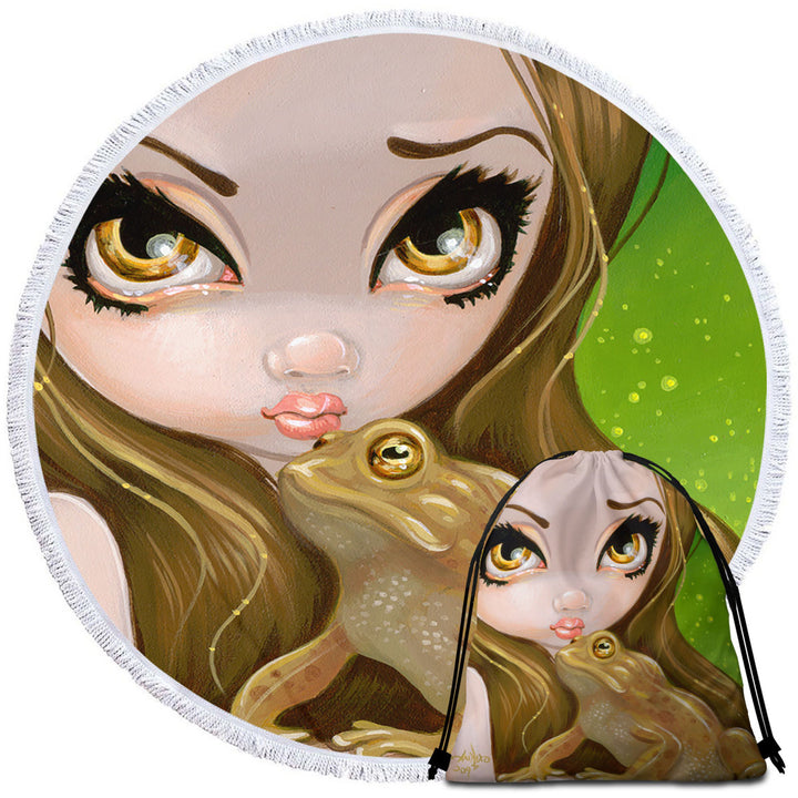Faces of Faery #28 Swamp Girl and Frog Round Beach Towel