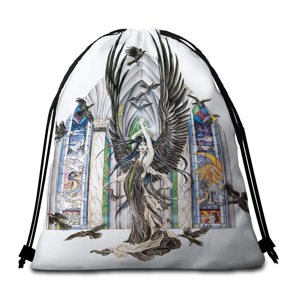Fantasy Art Fairy of Ravens Round Beach Towel