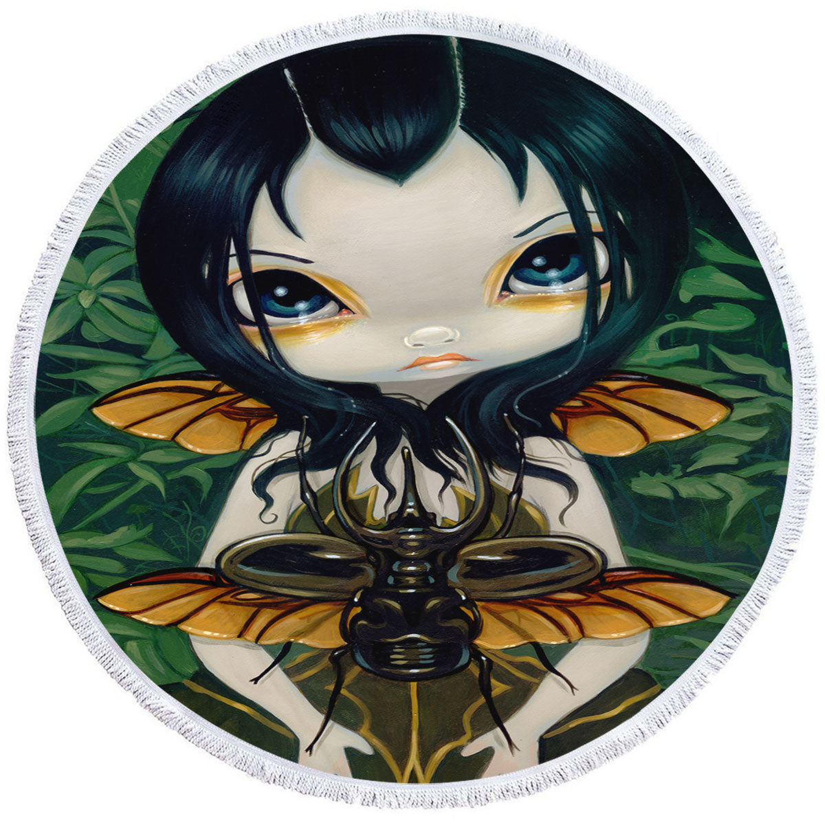 Fantasy Art Lovey Fairy Beetle Wings Round Beach Towel