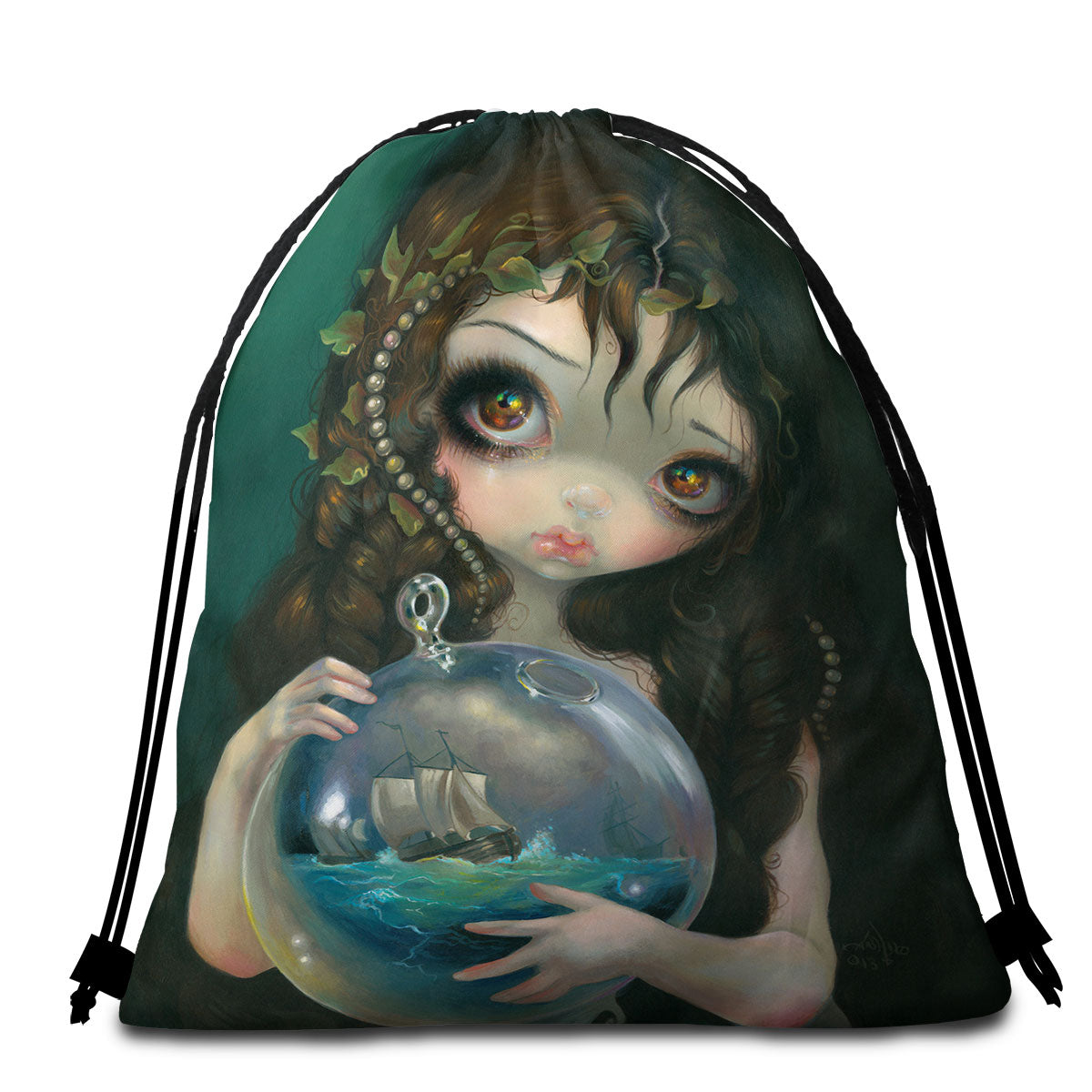 Fine Art Alchemical Girl Microcosm Seascape Ship Round Beach Towel