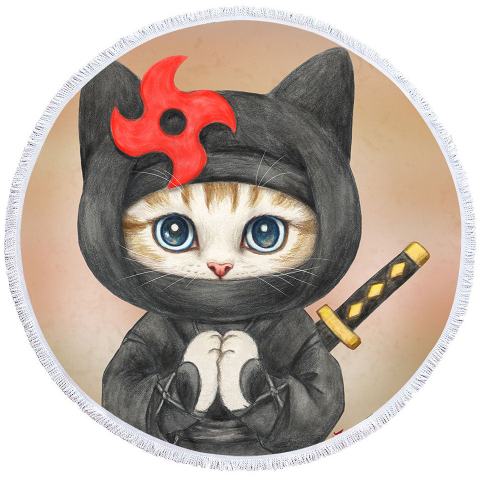 Funny Cats Cute Ninga Kitten Round Beach Towel