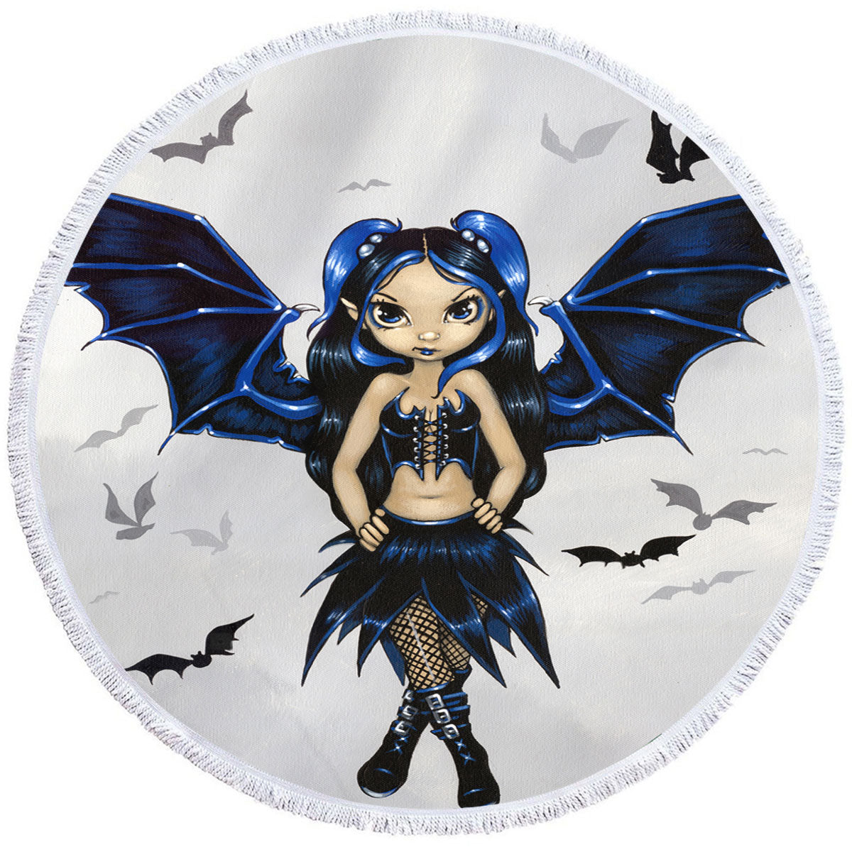 Goth Bats Fairy Girl with Bat Wings Round Beach Towel