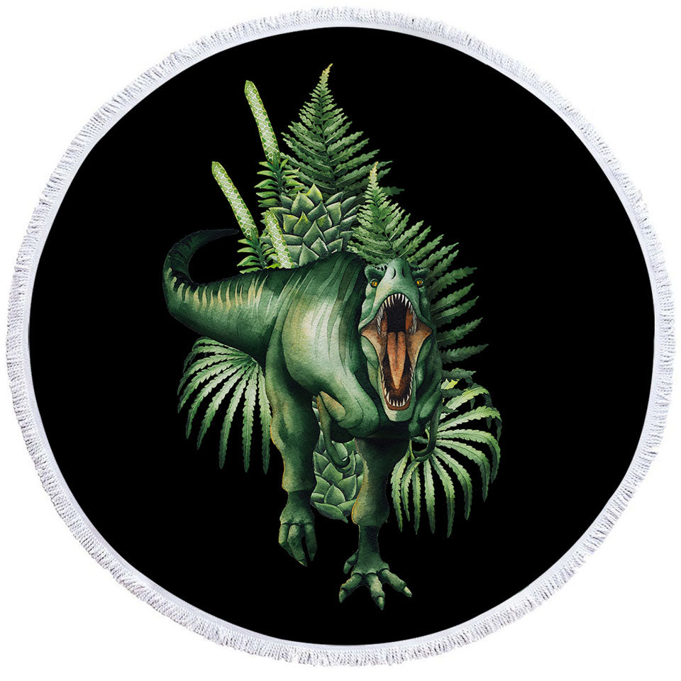 Green Scary Dinosaur Round Beach Towel