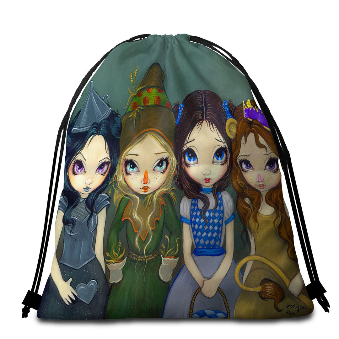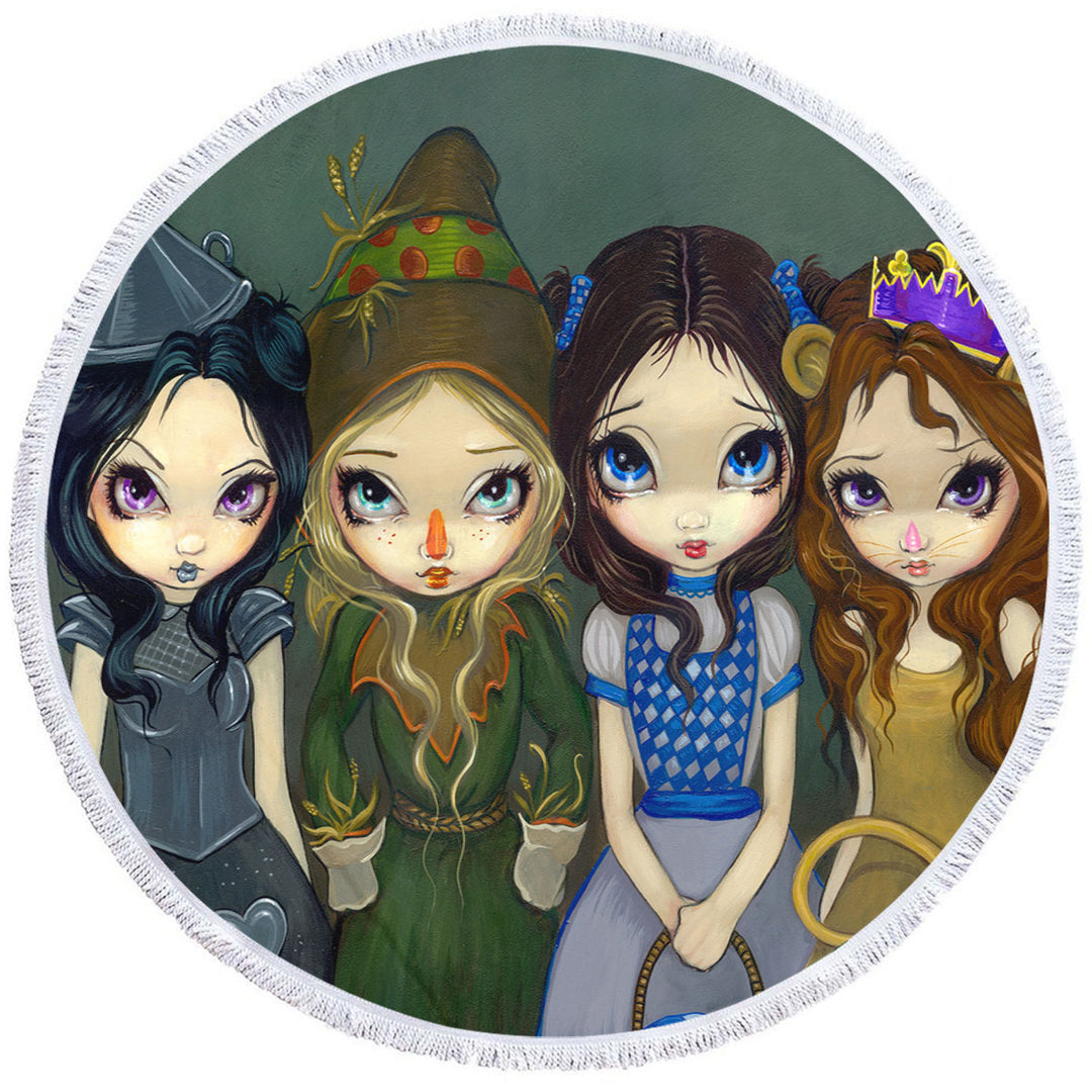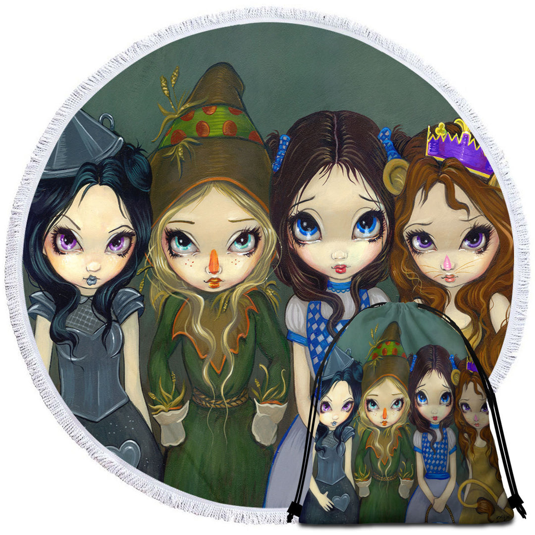 Kids Art Off to See the Wizard Dorothy and Friends Round Beach Towel