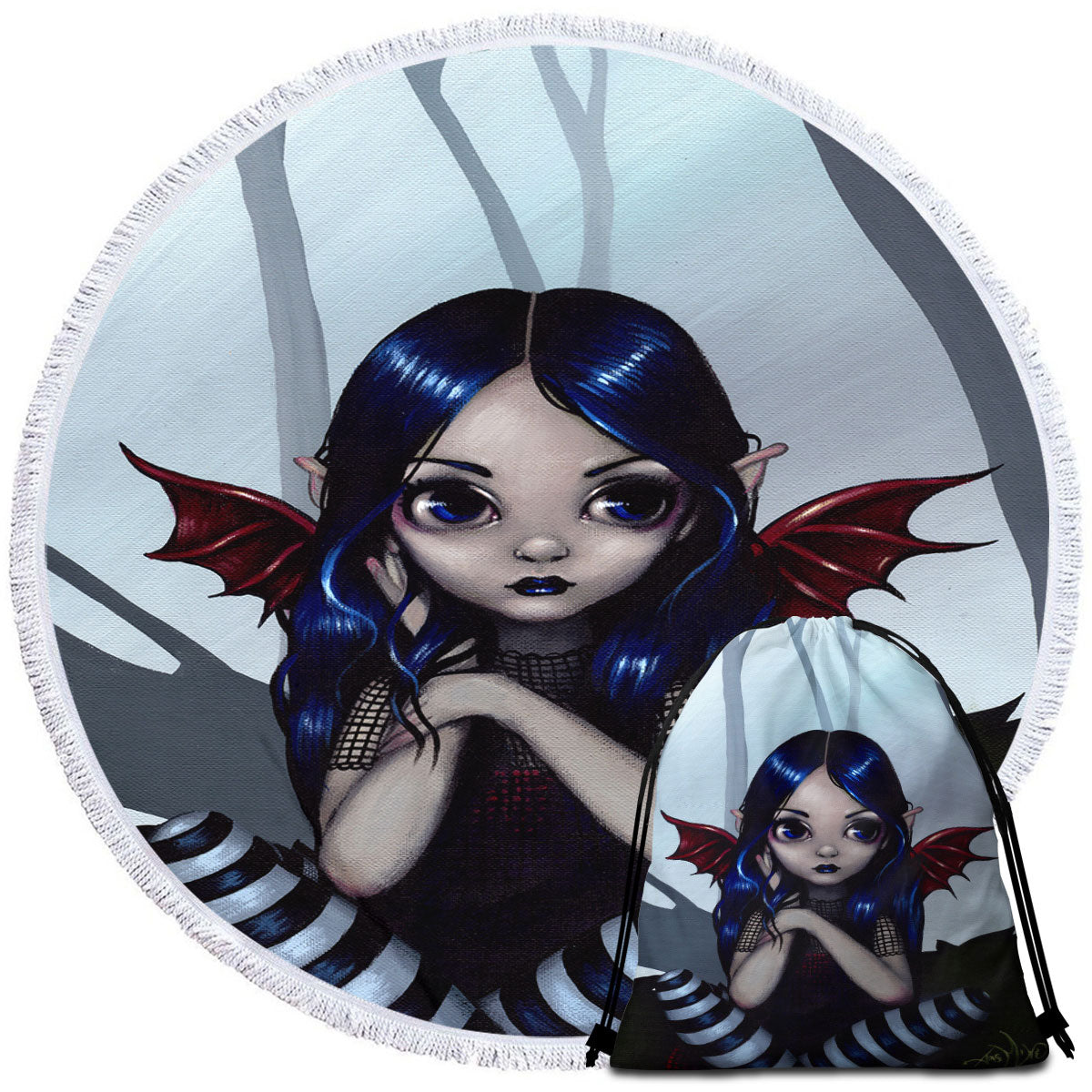 Purchase a round beach towel that features unique artwork.