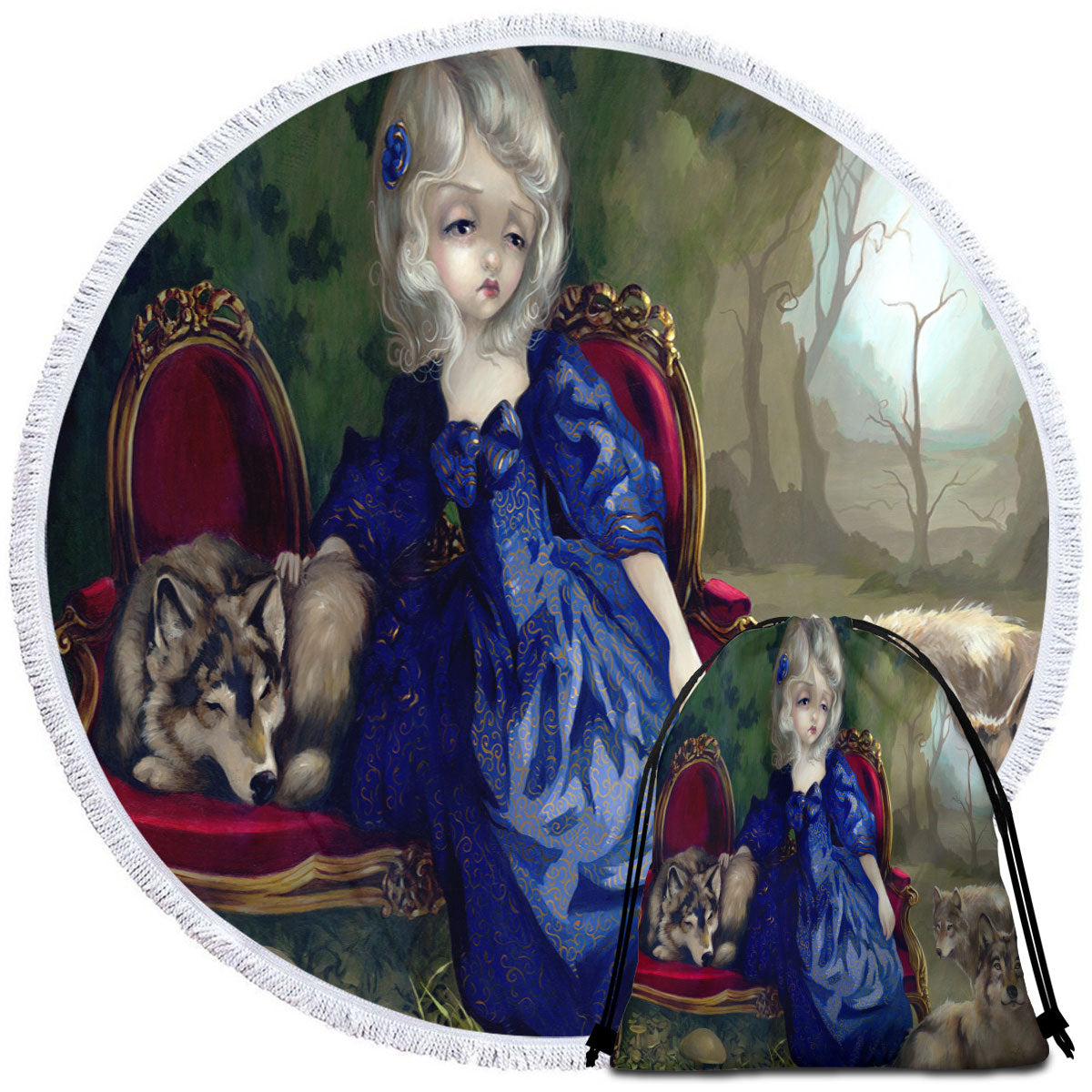 Loup Garou Fine Art the Sadness Girl and Wolves Round Beach Towel
