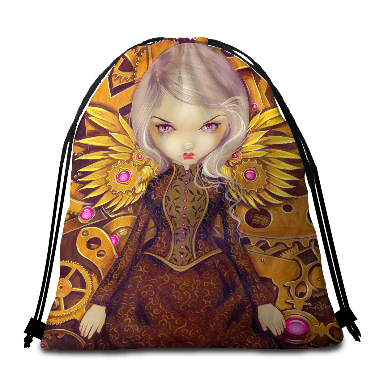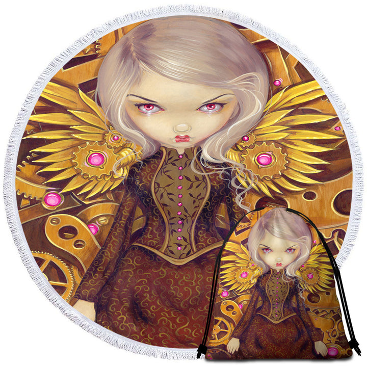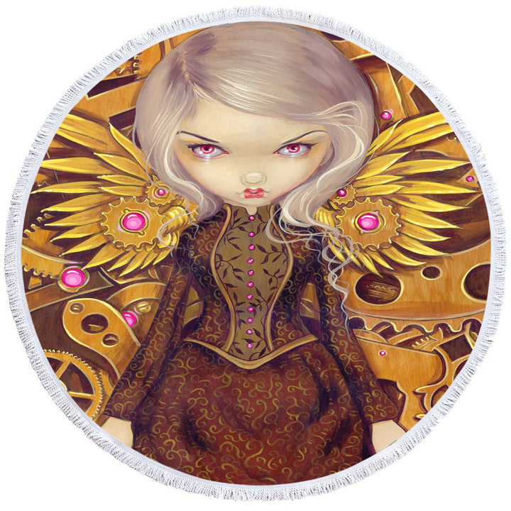 Mechanical Angel Steampunk Beautiful Clockwork Girl Round Beach Towel
