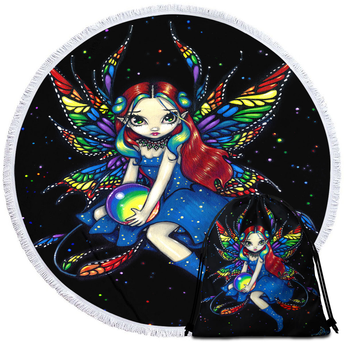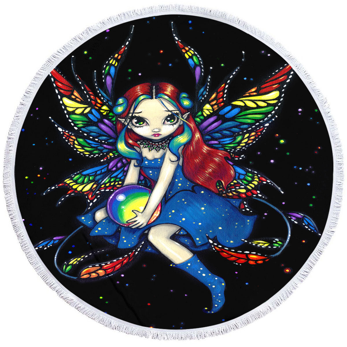 Midnight Rainbow Colorful Night Sky Fairy Round Beach Towel