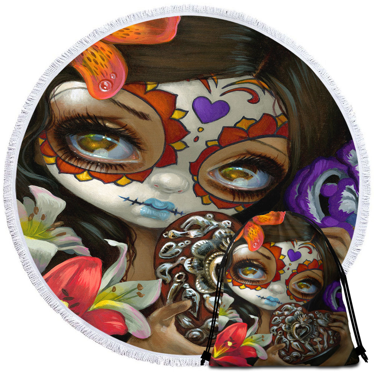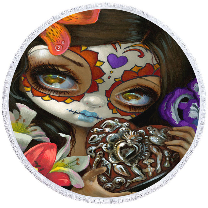 Milagros Corazon Day of the Dead Lovely Girl Round Beach Towel