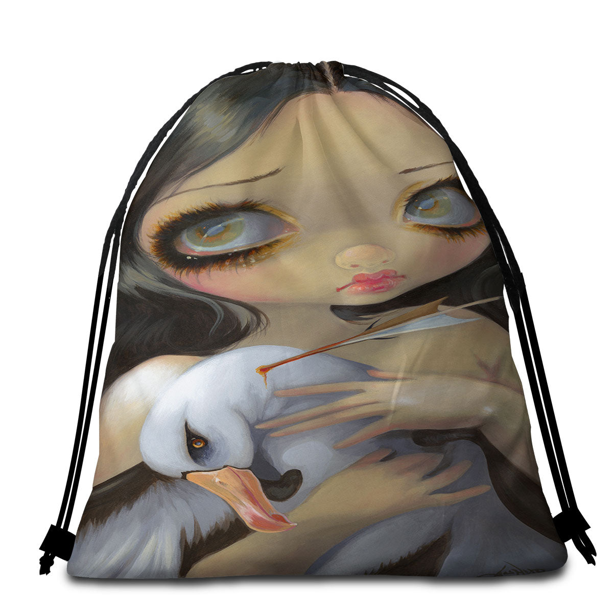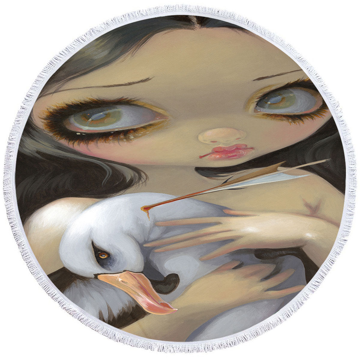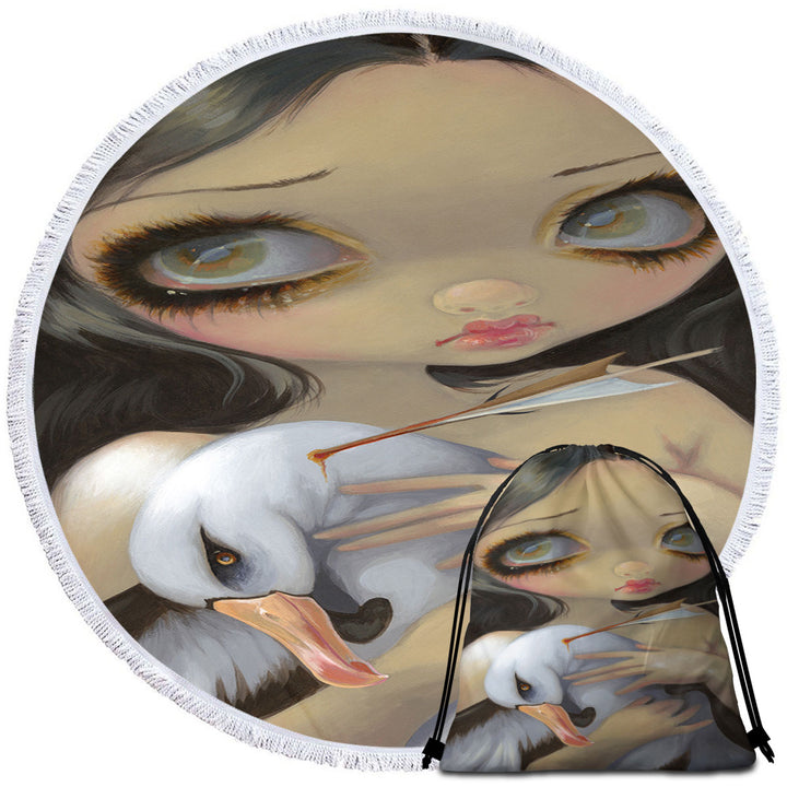 My Albatross Sad Art Painting Girl and Albatross Round Beach Towel