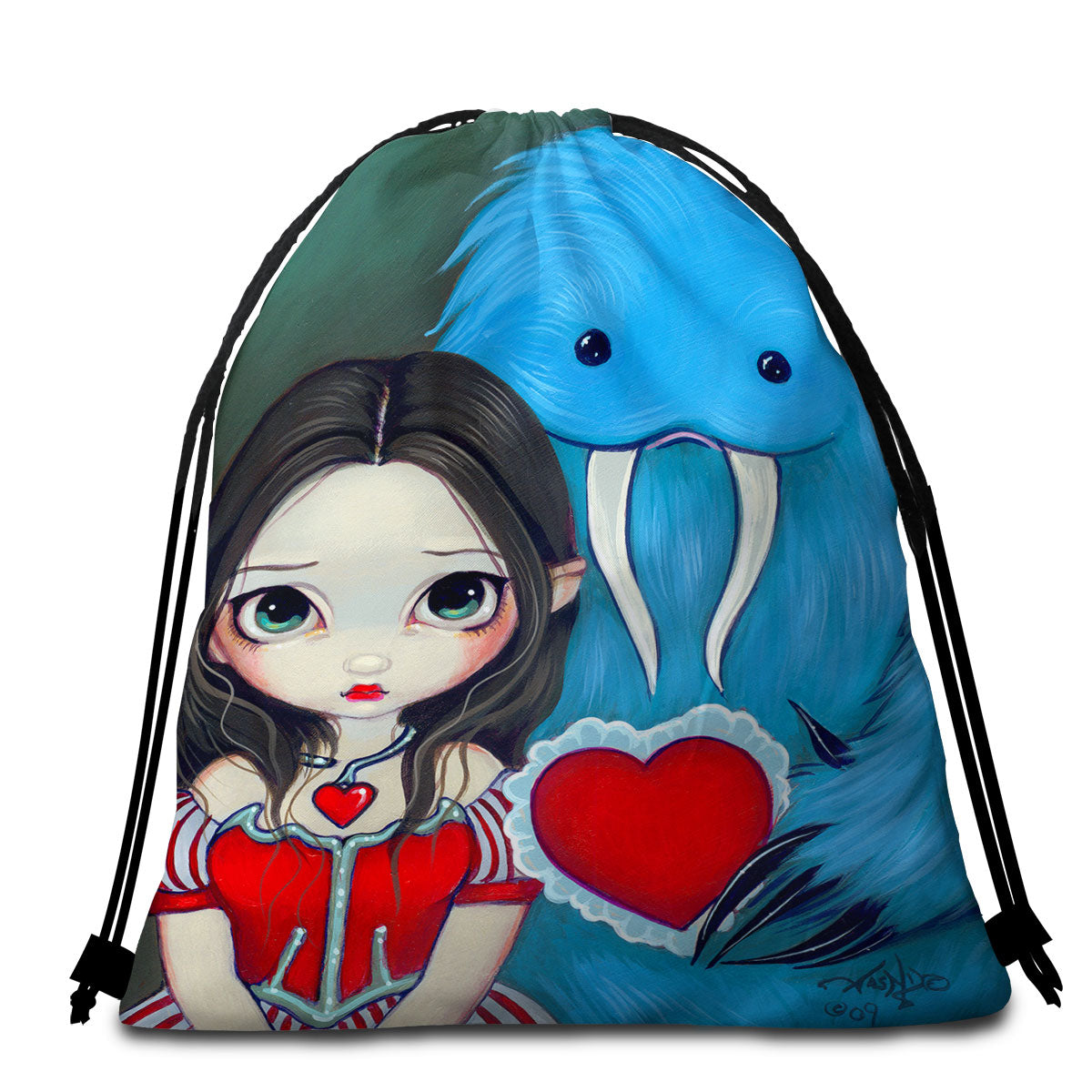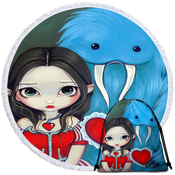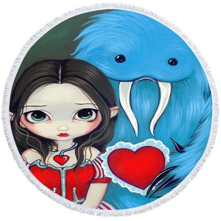 My Very Strange Valentine Adorable Maiden and Yeti Round Beach Towel