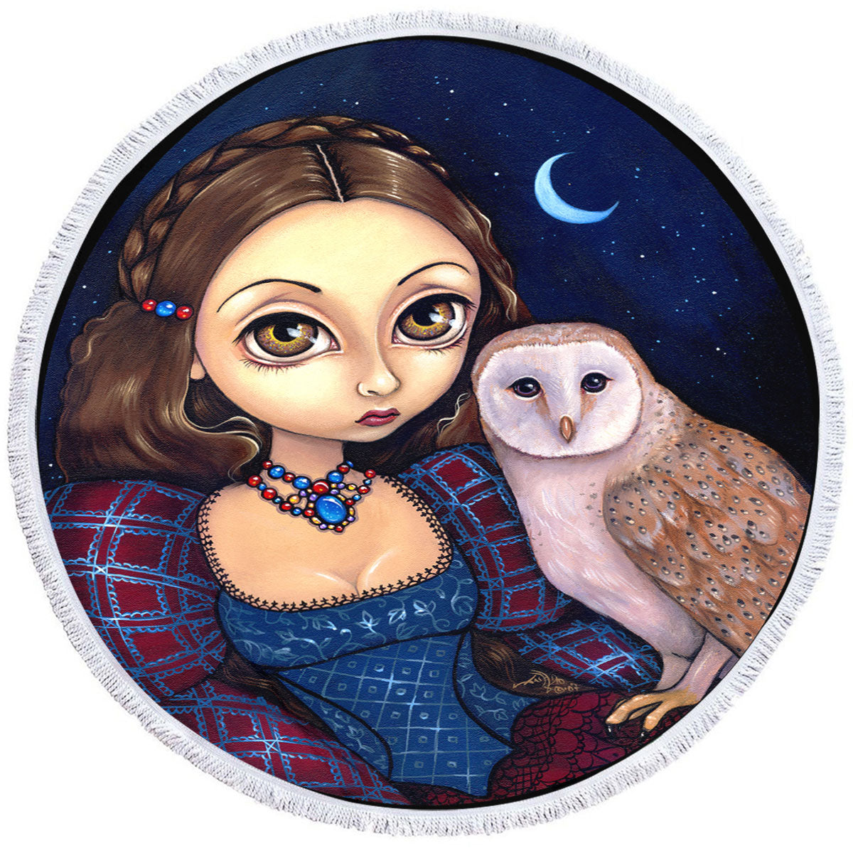 Night Sky Barn Owl Princess Round Beach Towel