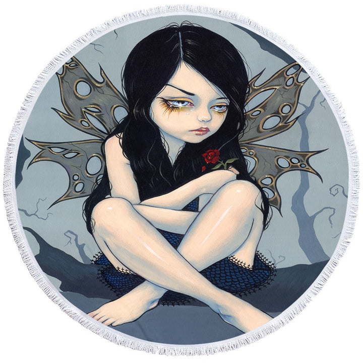 Nothing Left to Dream Melancholy Crying Fairy Round Beach Towel