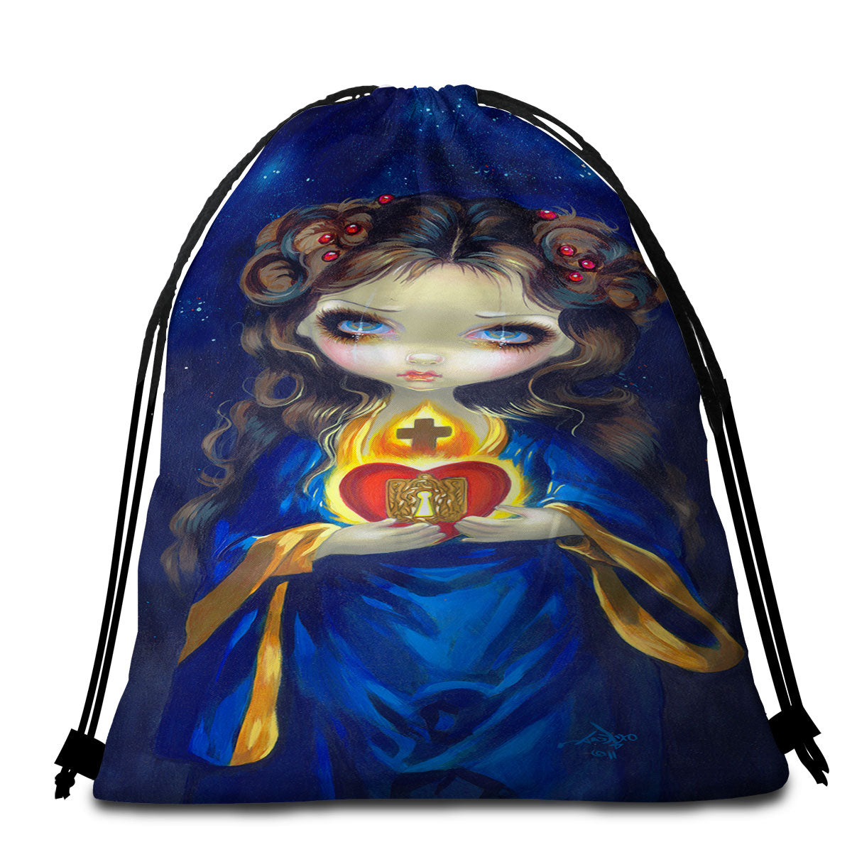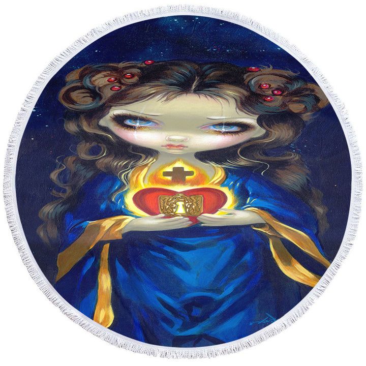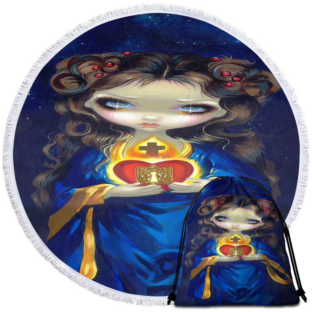 Occulta Cordis Beautiful Girl Holds Sacred Heart Round Beach Towel