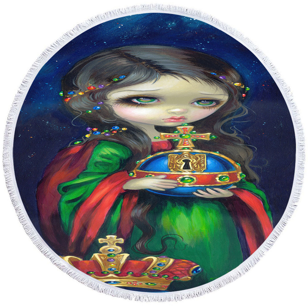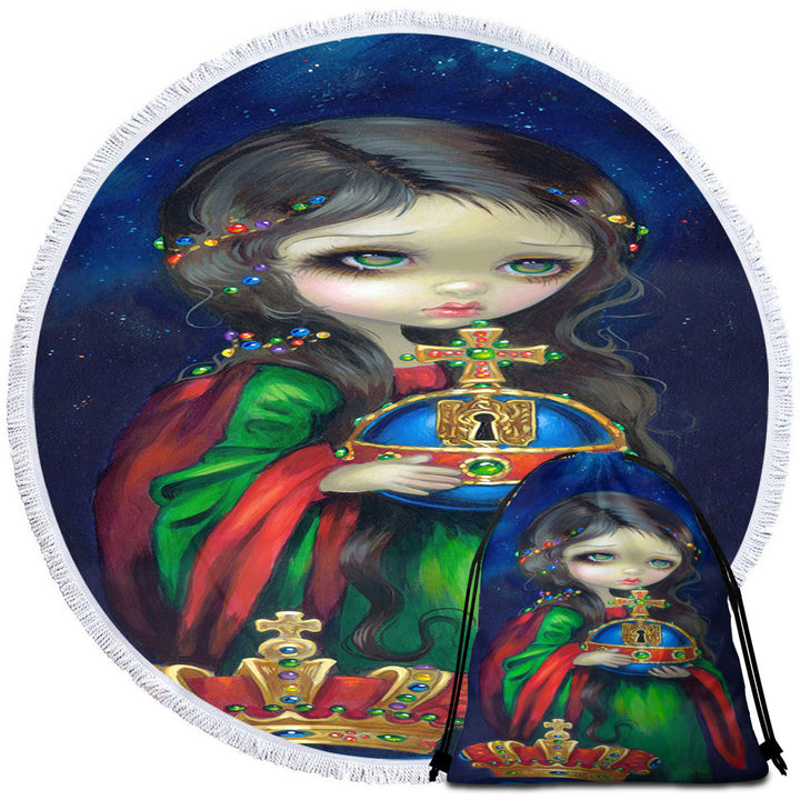 Occulto Orbis Beautiful Girl Holds Globus Cruciger Round Beach Towel