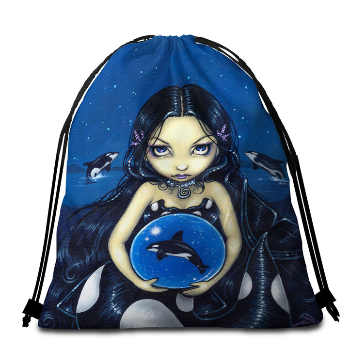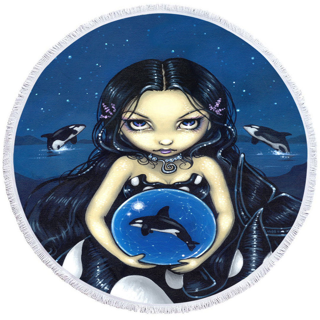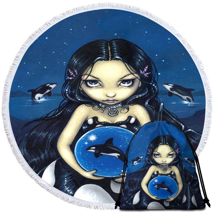 Orca Magic Killer Whale Tail Mermaid Round Beach Towel