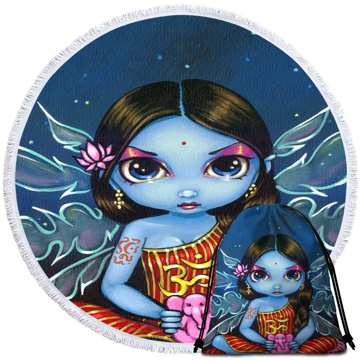 Oriental Fantasy Art Hindu Fairy Round Beach Towel