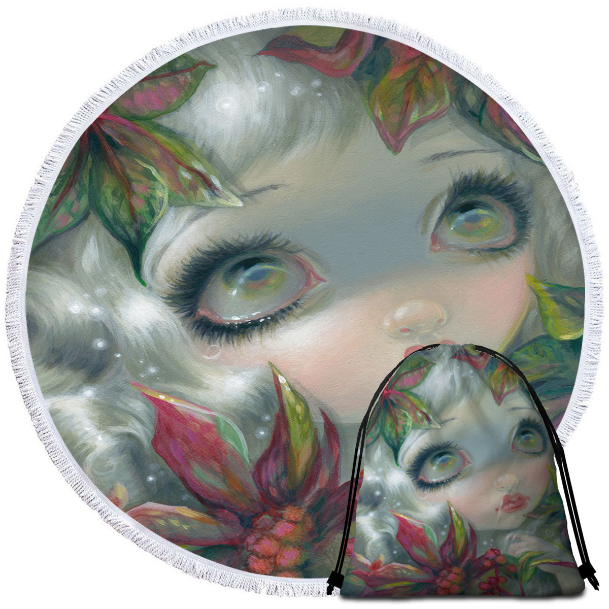 Poisonous Beauties Round Beach Towel Castor Bean Girl with Plants