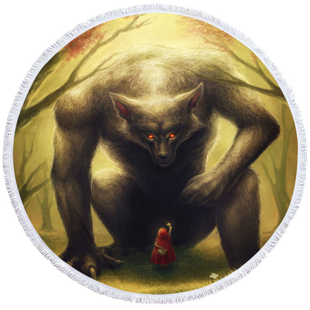 Scary Monster Little Red Riding Hood Round Beach Towel