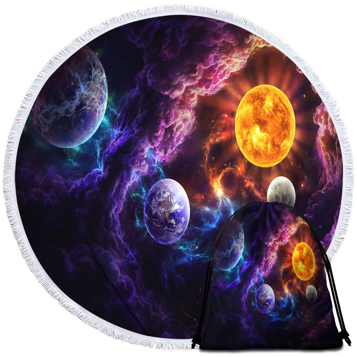 Sun Earth Space Plan of Salvation Round Beach Towel