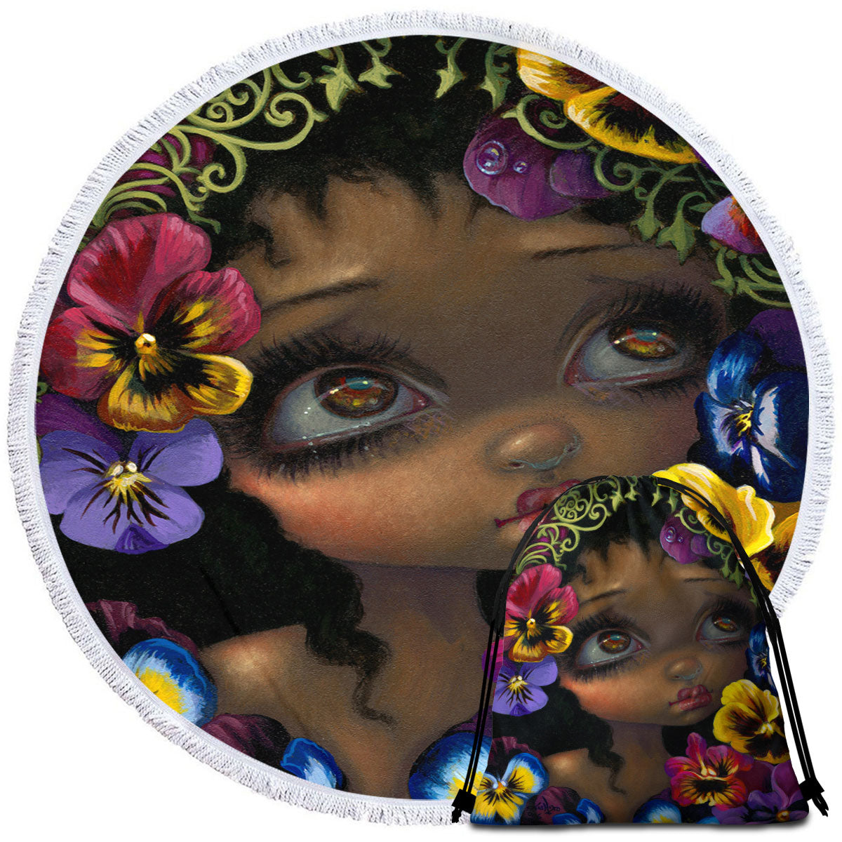 Unique printed round beach towels can suit adults, kids, women, men, girls, and boys. We offer two round beach towel sizes: 59 inches (diameter) and 39 inches (diameter).