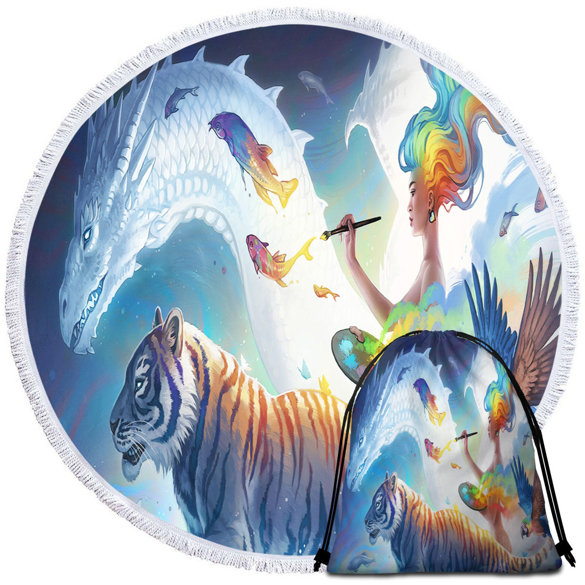 Unusual Beach Towels Tiger Fish Dragon Create Your World Fantasy Artist