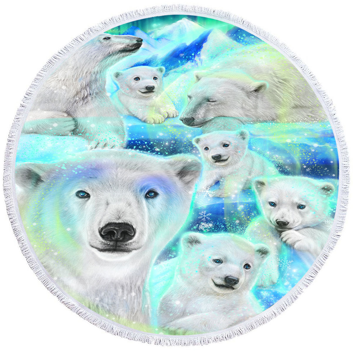 Winter Aurora Art Day Dream Polar Bears Round Beach Towel