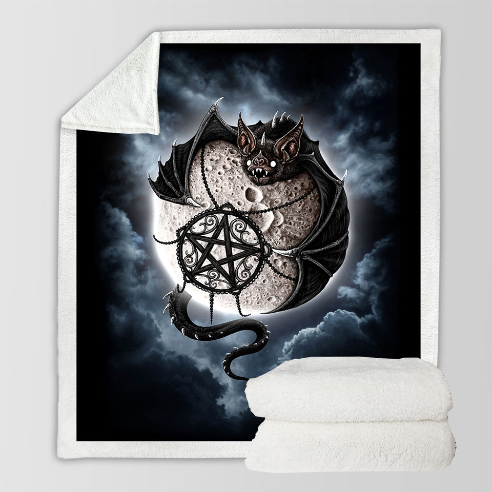 products/Cool-Gothic-Throws-Bat-Art-Full-Moon-Sherpa-Blanket