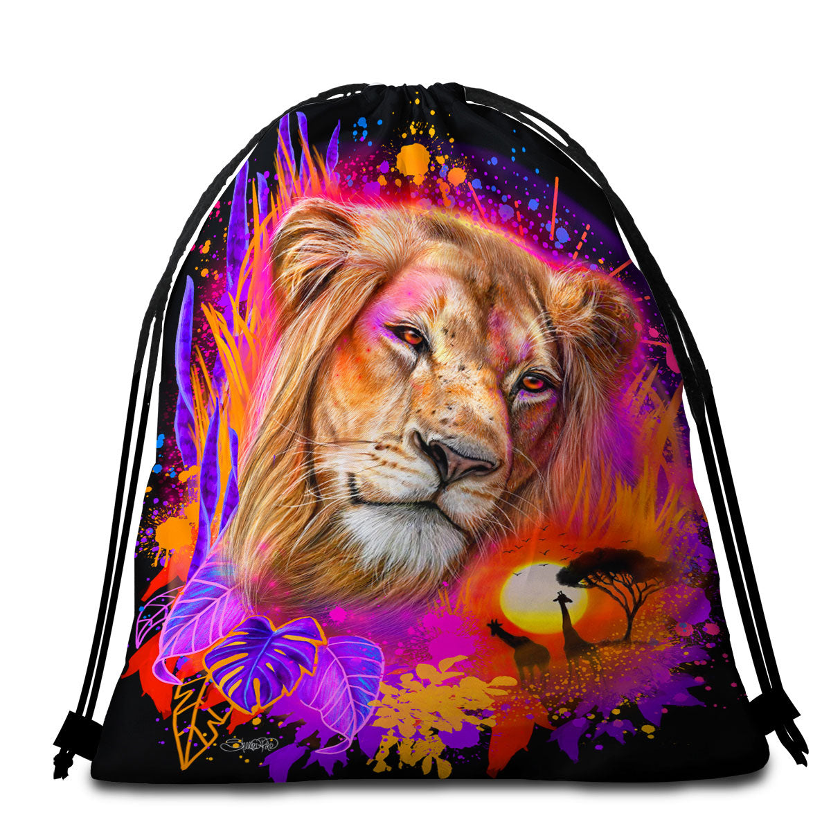They also can be set up with a lightweight drawstring bag that features the same beautiful design as the beach towel.