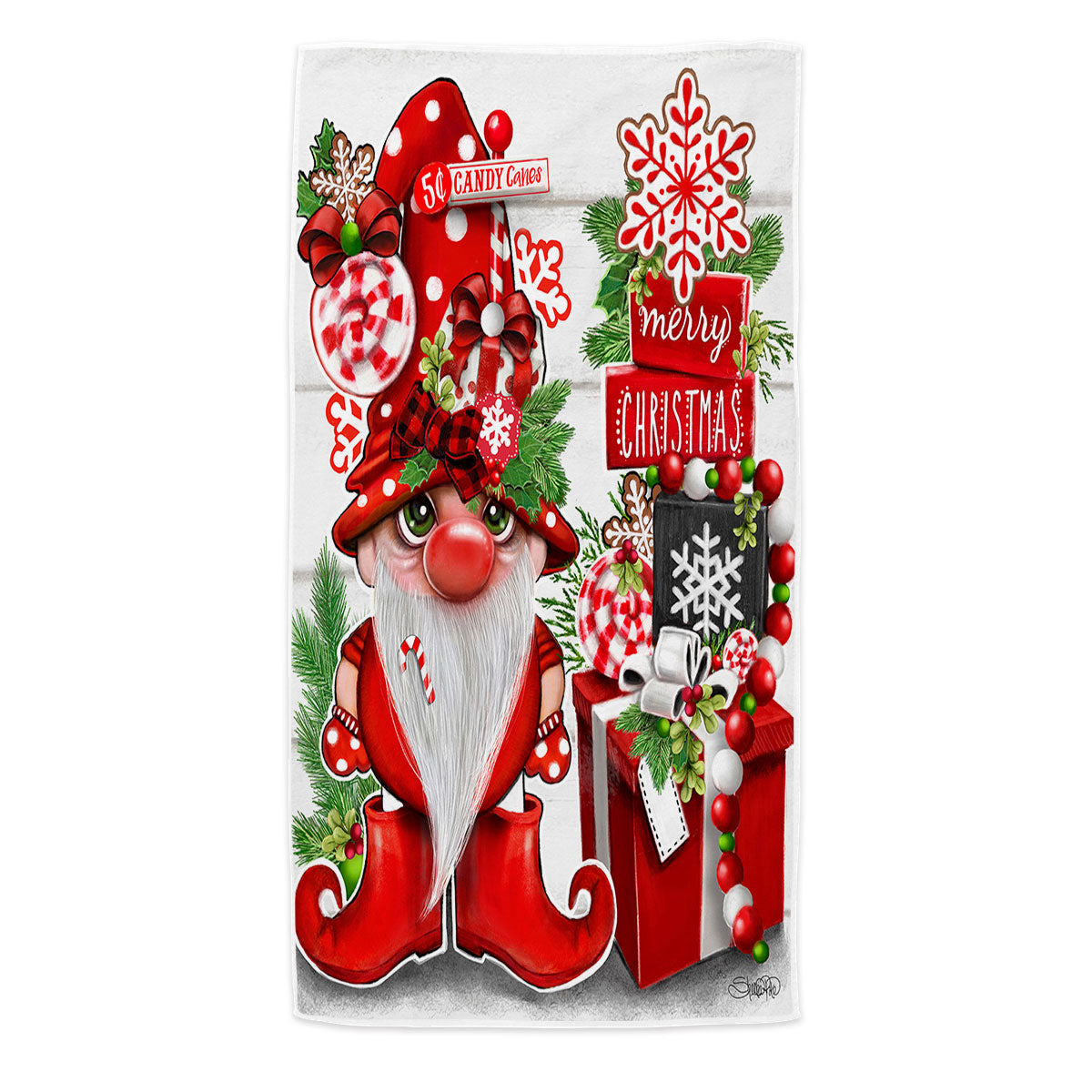 Christmas Peppermint Gnome Microfiber Beach Towel