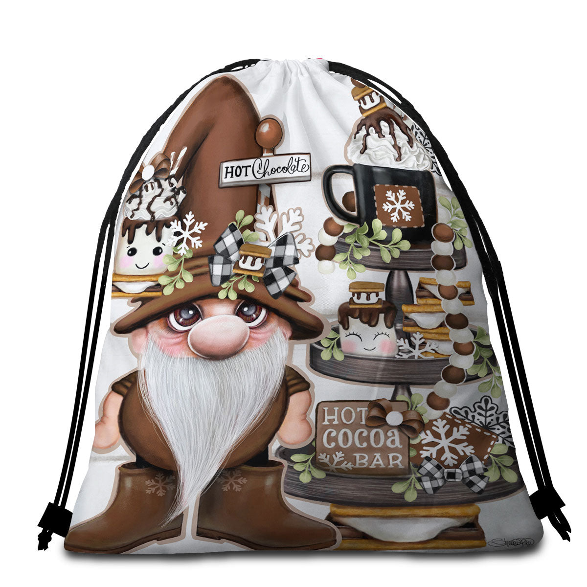 Cute Hot Chocolate and Smores Gnome Microfiber Beach Towel