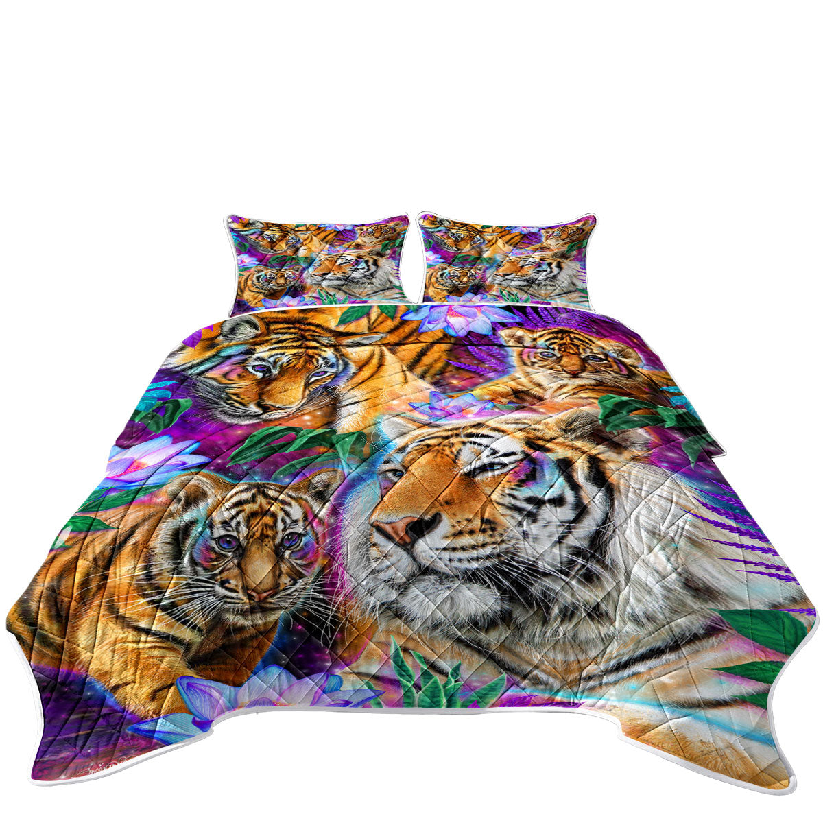 Painted Tropical Flowers and Day Dream Tigers Quilt