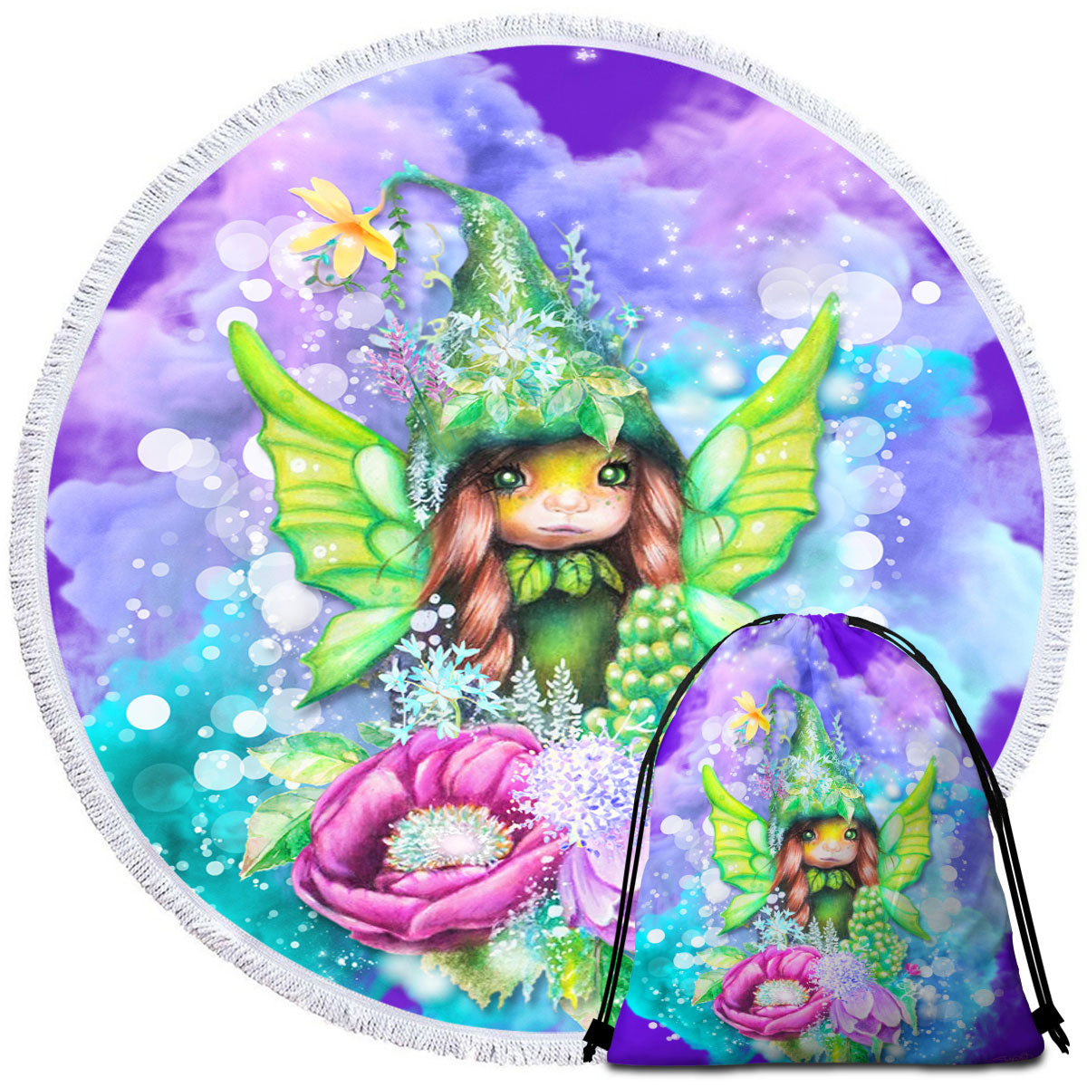 Cute Kids Art Flowery Little Pixie Round Beach Towel