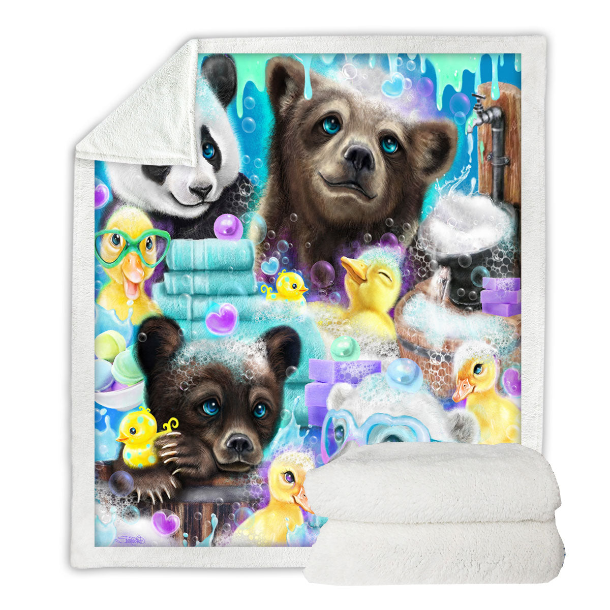 Cute Bears and Ducks Bath Scrub a Dub Cubs Throw Blanket