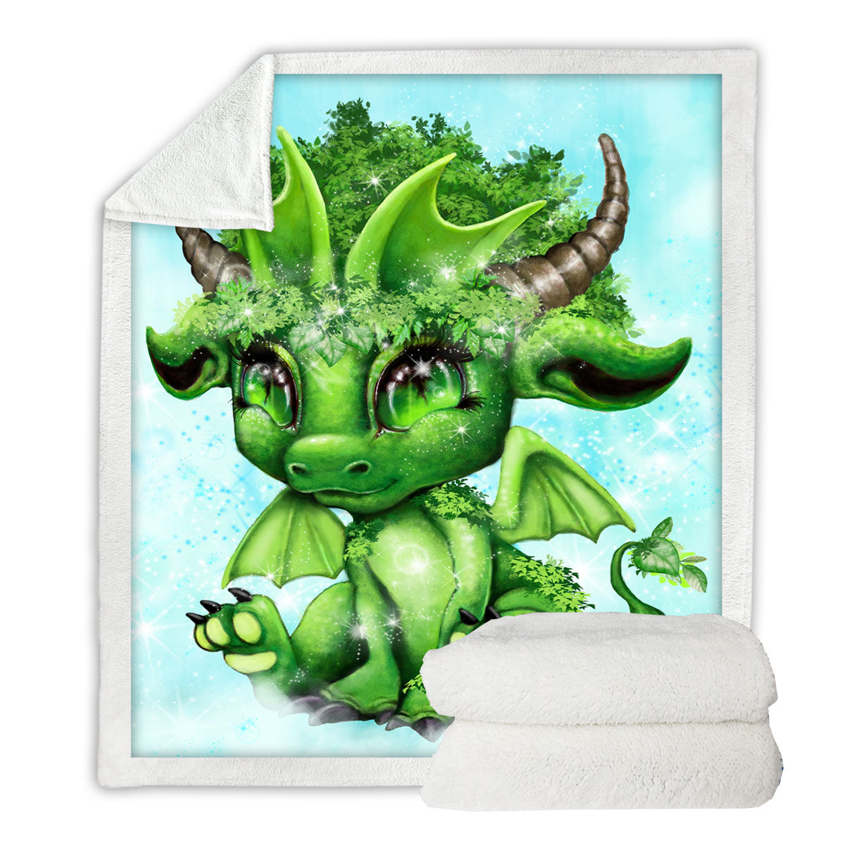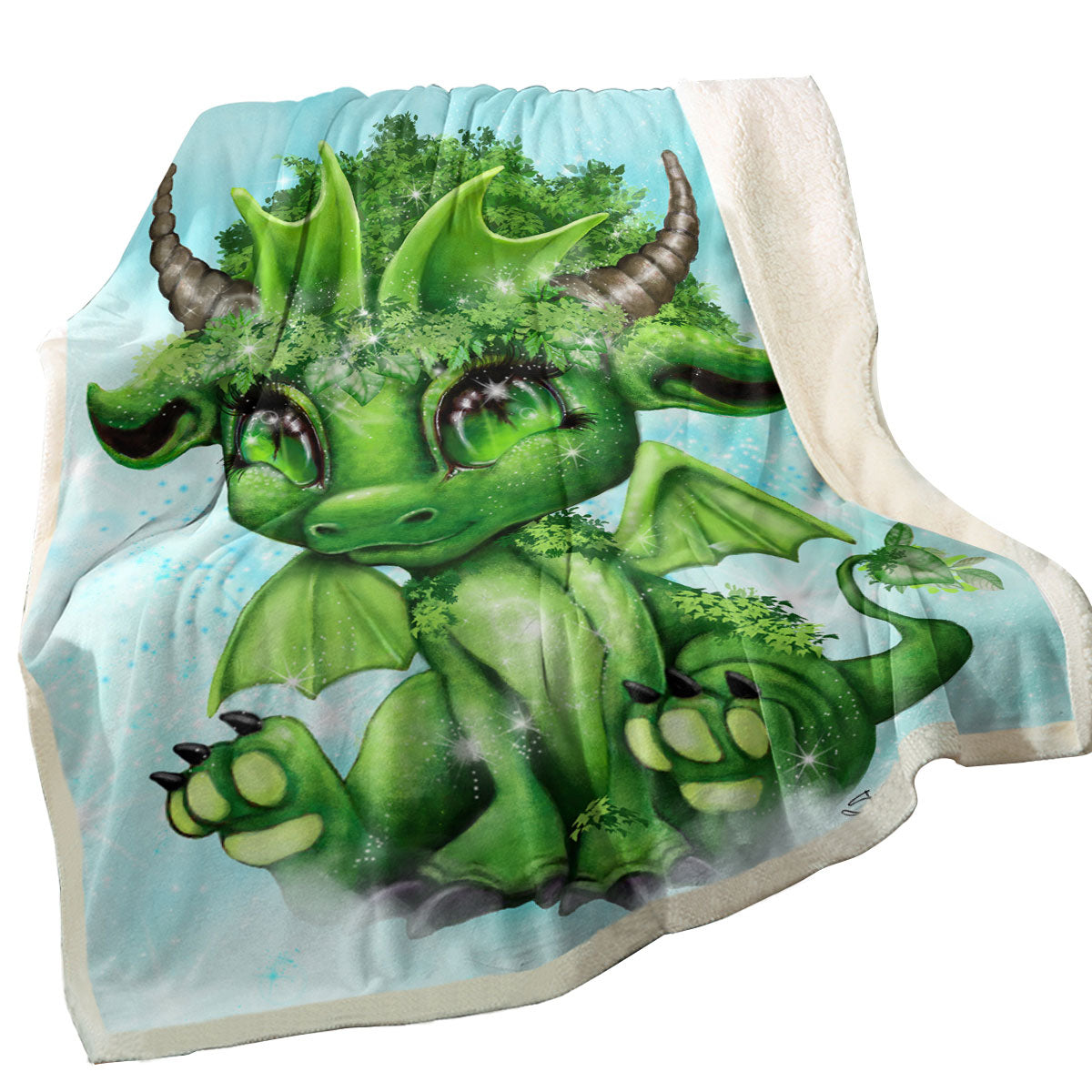 Cute Fantasy Creature Green Leaf Lil Dragon Throw Blanket
