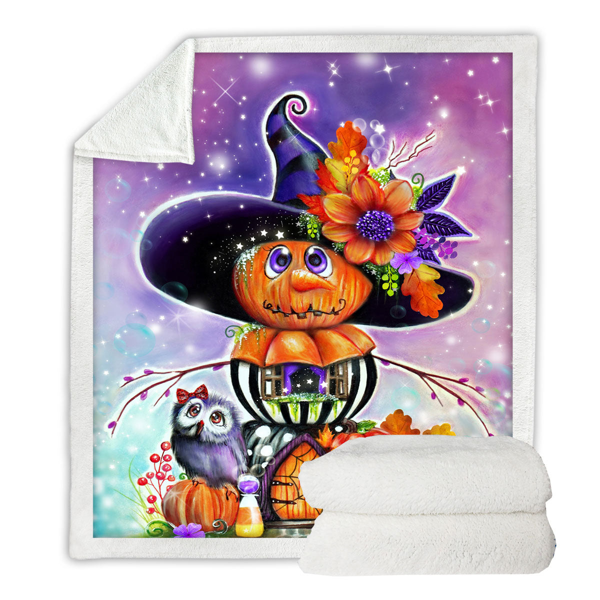 Pumpkin Witch Jack O Man Halloween House Throw Blanket