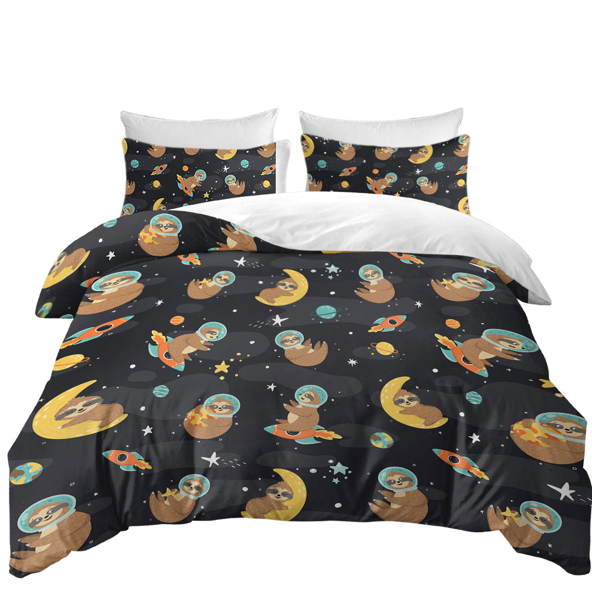 Cute and Funny Astronaut Sloth in Space Duvet Cover