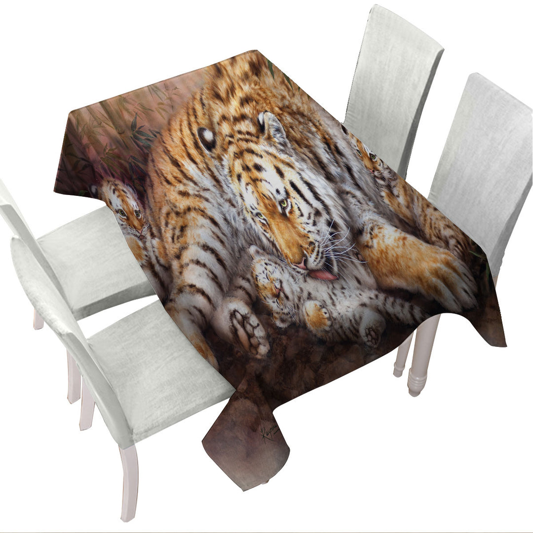 Wildlife Animal Art Tiger Family in Bamboo Forest Tablecloth